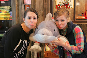 We got in the car and headed to a restaurant Grandmama had recommended: The Crazy Crab. Morgan and I reenacted a picture we took for our parents at Sea World many years ago. We didn't actually want the stuffed animal this time; we just seized the moment.